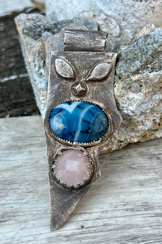 Rose quartz and agate sterling silver pendant
